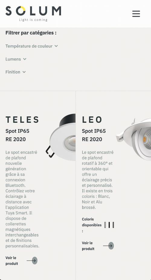 Solum, placé sur le plus grand marché du monde : internet. La création d’un site web entièrement personnalisé, vient concrétiser le branding de la société. En parfaite harmonie avec l’identité créée, il devient un élément moteur dans la stratégie commerciale de la marque.
