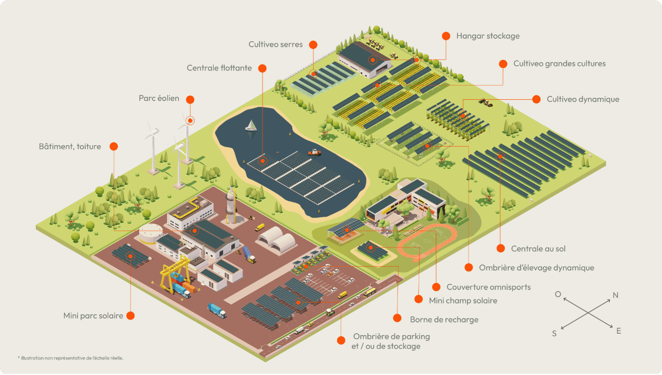 Éolien, agrivolataïsme, toiture et ombrières, centrales au sol et flottantes, le principal enjeu de la nouvelle identité était de proposer un système graphique évolutif à même d’incarner l’ampleur des savoir-faire de la marque auprès de ses clients, mais également pour ses collaborateurs actuels et futurs.