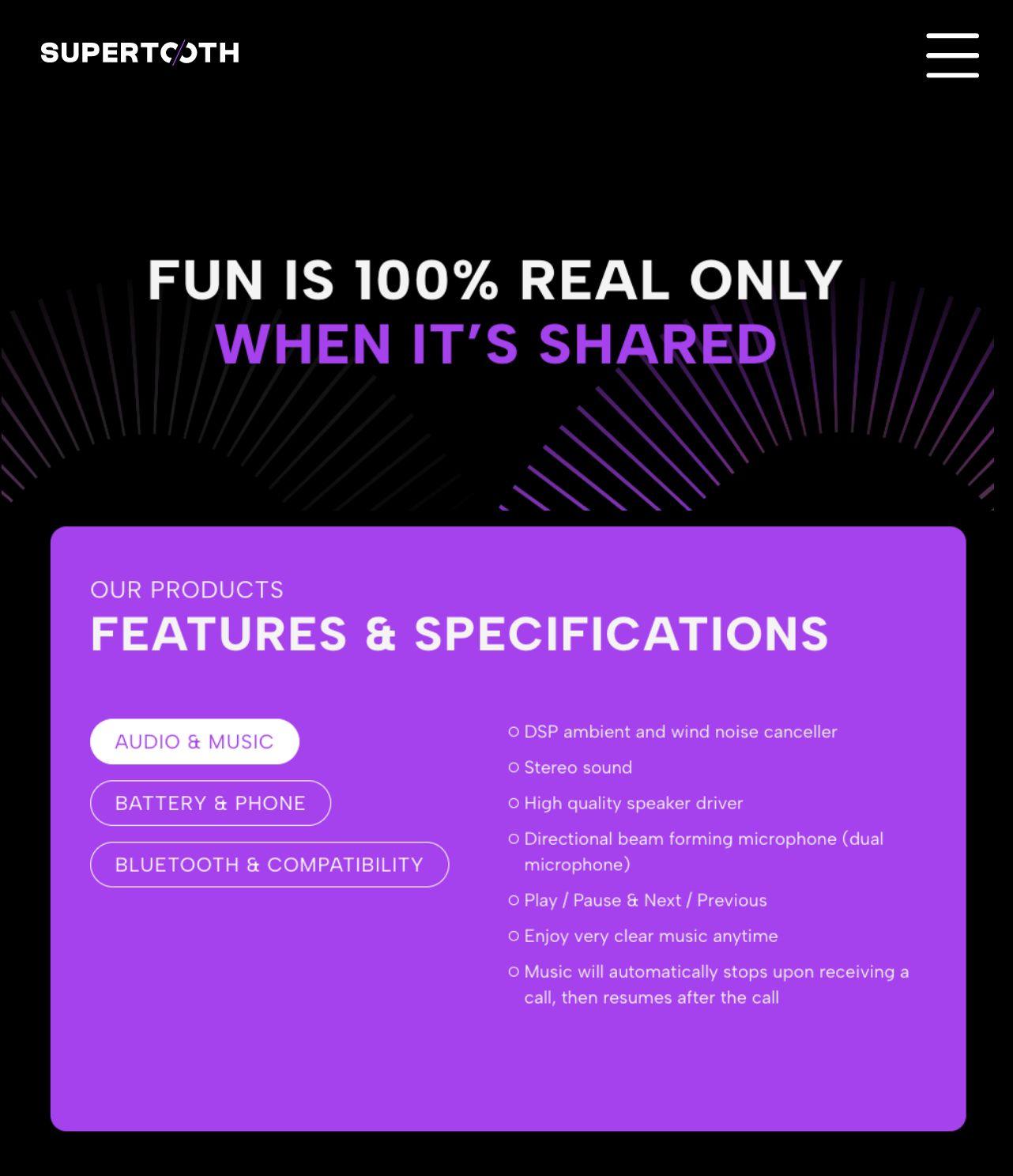 Spécialiste de la technologie bluetooth depuis 2003, Supertooth opère un virage vers une spécialisation outdoor et une cible d’aventuriers. En parallèle, le lancement de produit vient bousculer l’architecture de gamme. Notre mission ? Accompagner en profondeur la stratégie de rebranding de l’entreprise.